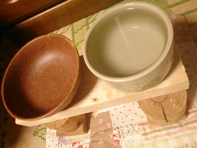 ようやく自分で水を飲むようになって、絹志朗のために買った「水がまろやかになる器」が本来の機能を果たしている(笑)