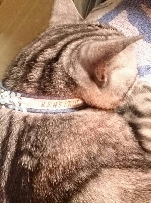 ちなみに、普通はバックルみたいなちゃんとした留め具をつかうんだろうけど、うちは手元にあったモノを使ってます。。