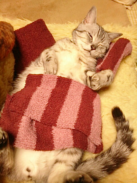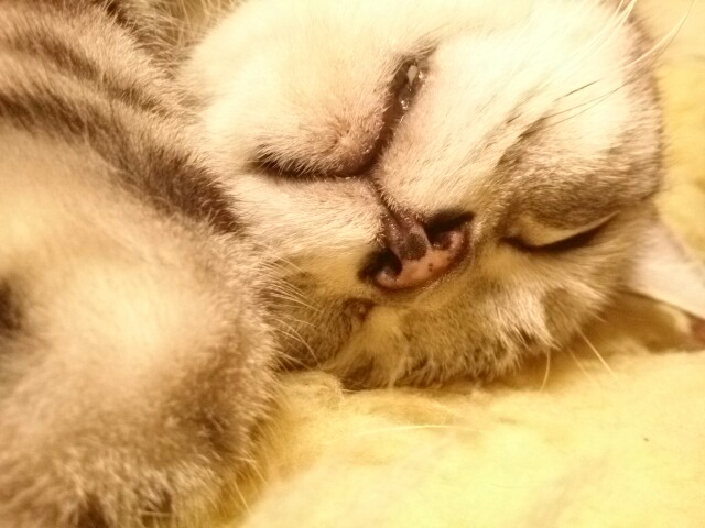 本当は病院に連れて行くべきでしょうが、絹志郎は病院に行くこと自体がストレスになってごはんも食べなくなるし、なぜか玄関ドアに向かって鳴き叫ぶんです(==;)