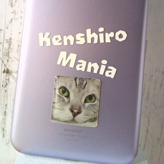 スマホにこのブログの名前「Kenshiro Mania」と、絹志郎の写真のエンブレムシール