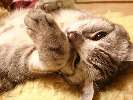 ペットケアアドバイザーの資格を取ったときついでに購入した本に、猫は人が口で言う事よりも、頭で考えている事を察するようだって書いてあった。