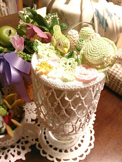 上に飾られたものは、編み物得意の母が、色々編んで飾り付け。